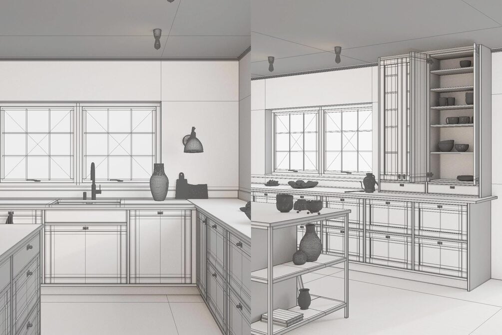 The 2K version of this kitchen scene comes for a lower price, but therefore with lower resolution for the textures.