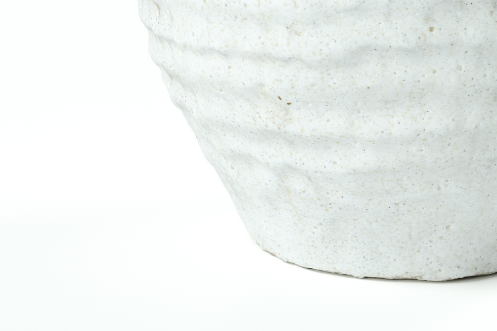 With this white vase you can decorate your living room shelf, coffee table or sideboard. Imagine it in a dark environment as a white eyecatcher.